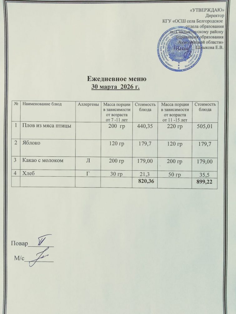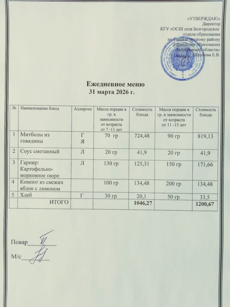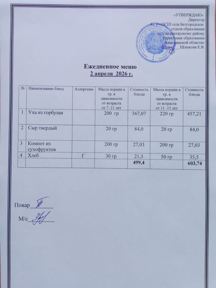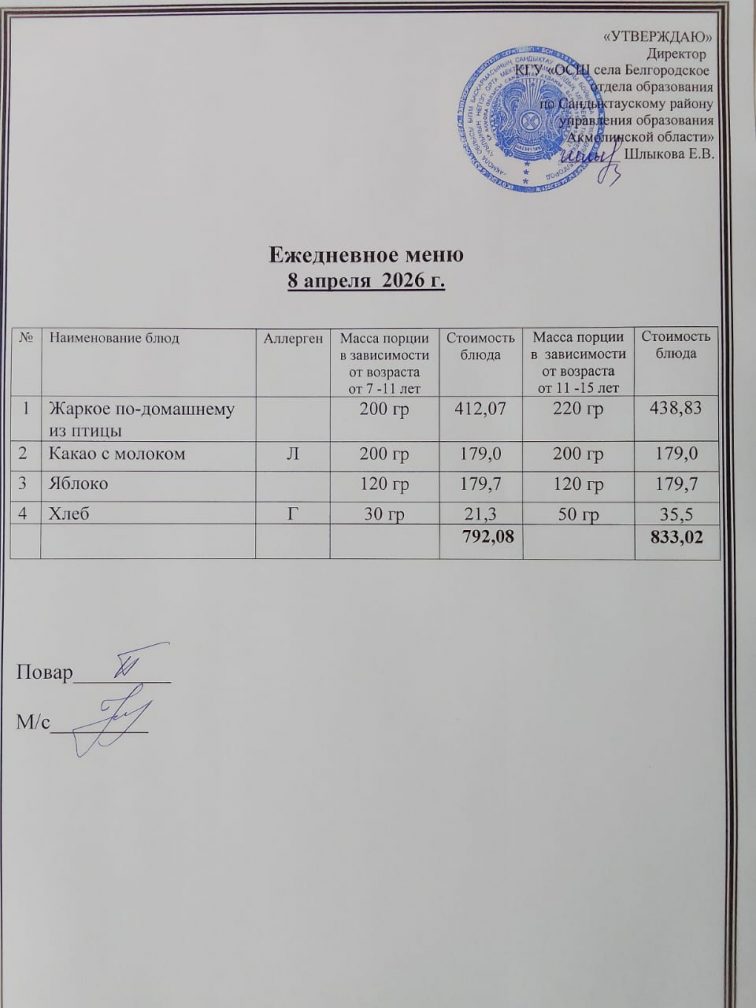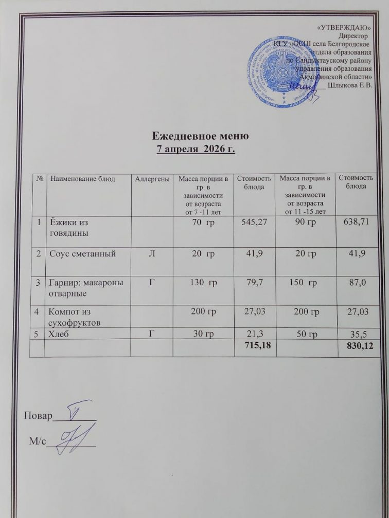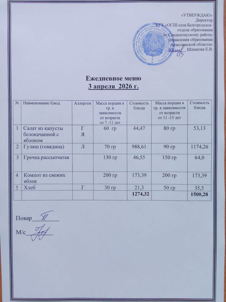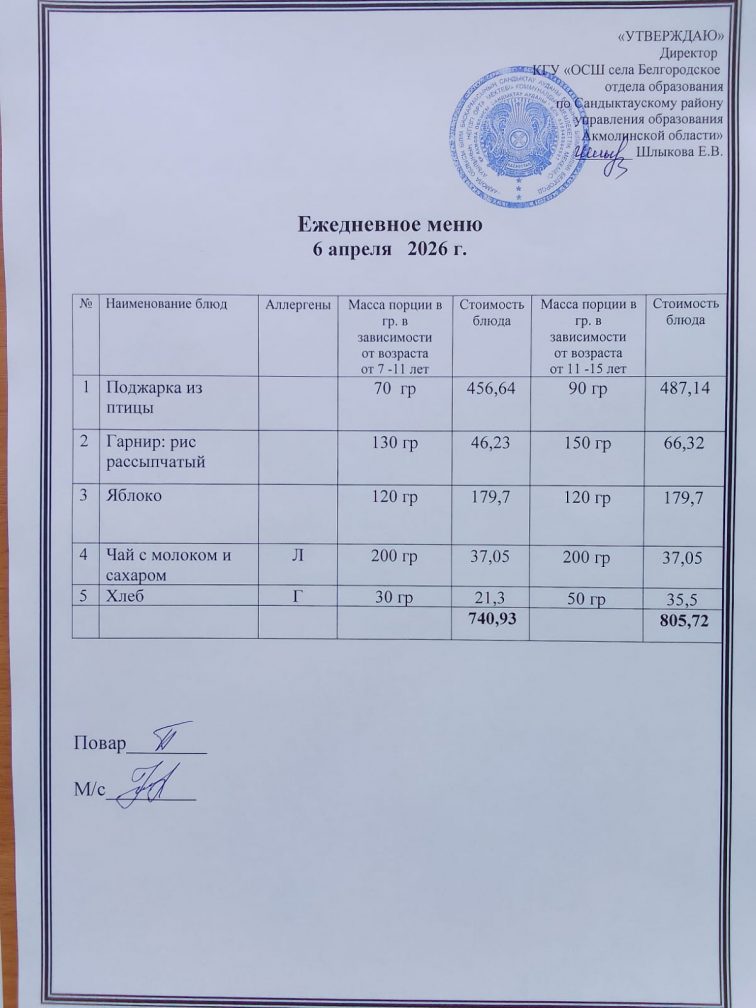 Апталық мәзір 4 тоқсан 2025-2026 оқу жылы